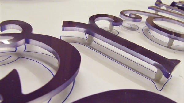 Flat cut letters, or fret cut lettering, is produced by laser or router cutting a chosen flat material to create a sign with simple cut out letters, shapes or logos.