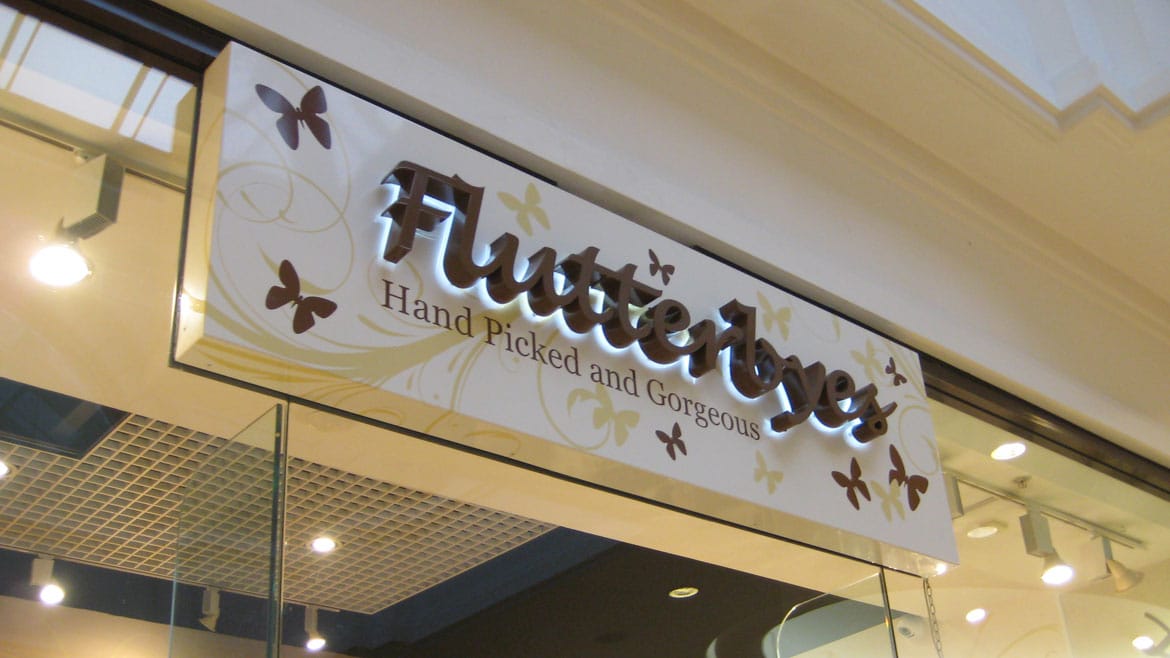 The halo illumination is created with internally fitted LEDs facing towards the rear of the built up letters and logos. The rear illuminated sign lettering often has opaque faces so that a glow is only created on the surface the sign letters are mounted to when they are lit.