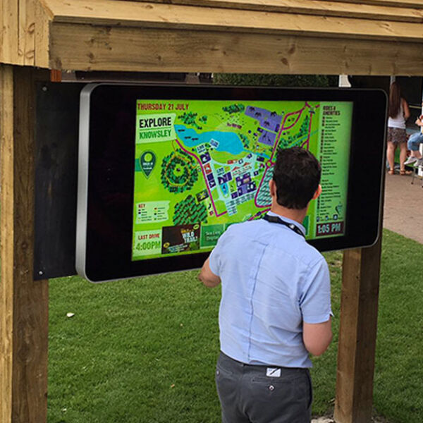 Outdoor digital signage products use high brightness panels for their screens to ensure they are easy to read even in the sunlight.